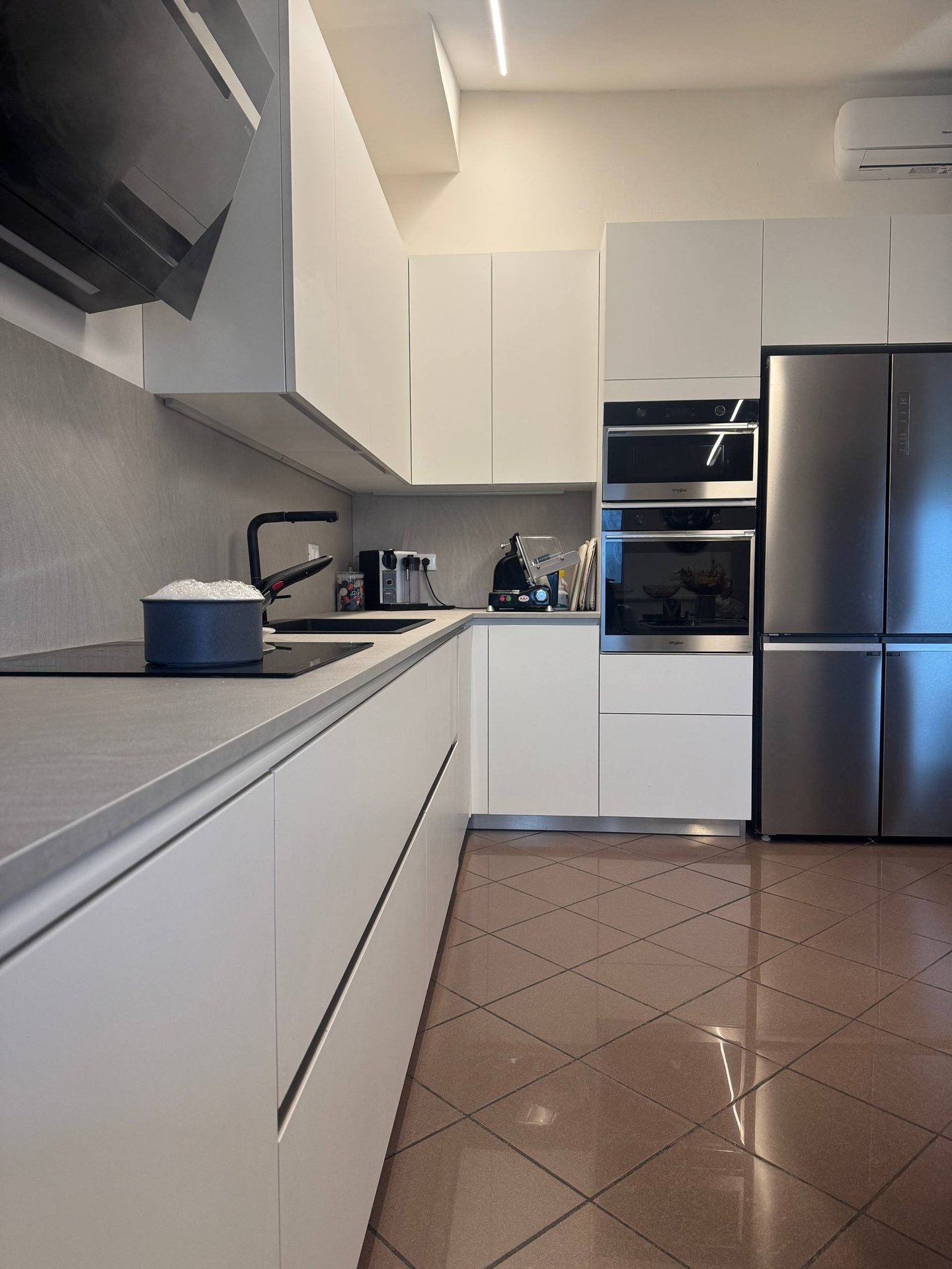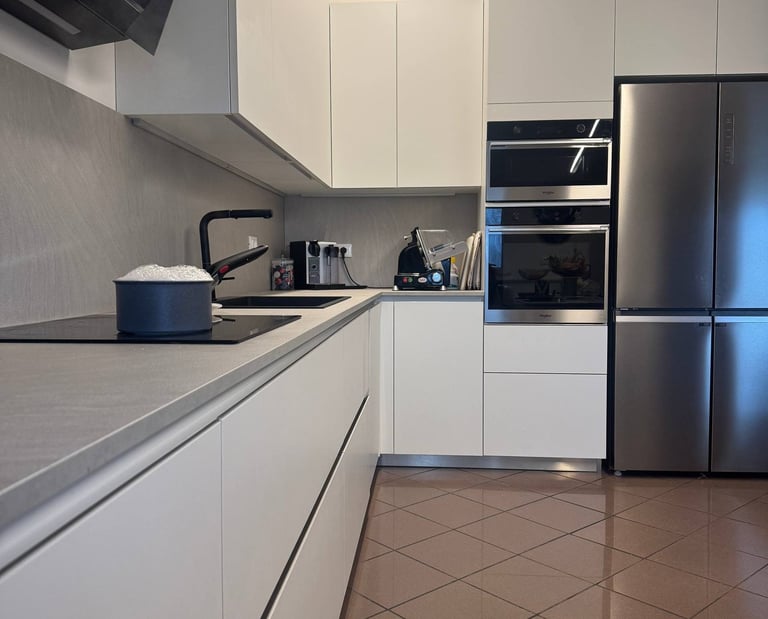 Progetto completo di interior design per una cucina contemporanea, studiata per unire funzionalità, pulizia estetica e armonia degli spazi.